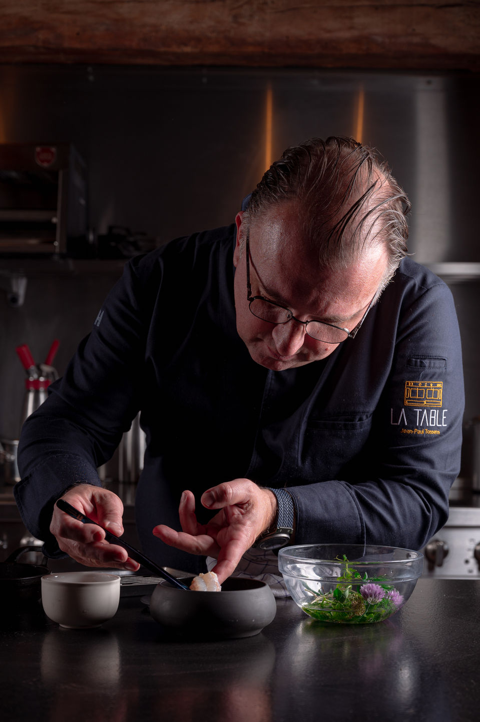 Sincérité et générosité s’unissent au cœur des créations de Jean-Paul Tossens, un chef attaché à sublimer les produits de saison sans effet inutile mais en les ouvrant, par des techniques, des alliances ou des assaisonnements, à de nouveaux horizons, ceux qui ont marqué les voyages du cuisinier ou qui sont un rappel de ses origines wallonnes.